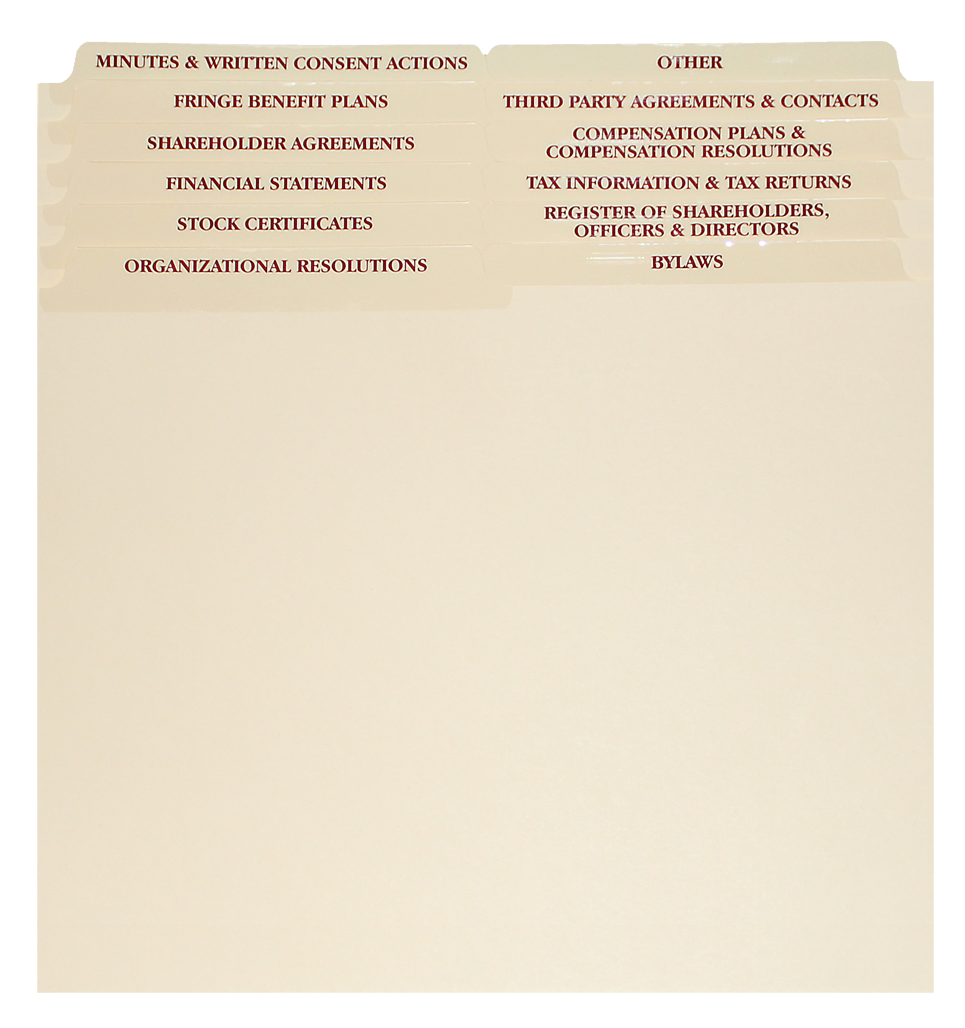 12 Set Corporate Document Dividers 1/2 cut $3.40 ea.