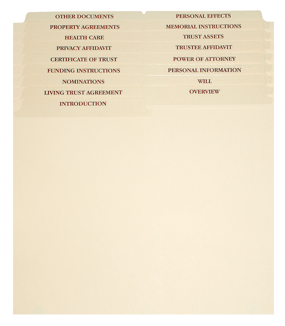 17 Set Estate Planning Dividers 1/2 cut $5.85 ea